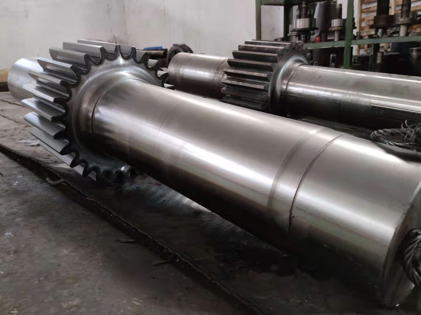 棒料、鍛件 → 粗車加工 → 調(diào)質(zhì) → 精車加工 → 銑鍵槽 → 熱處理(表面淬火貨滲碳淬火) → 研磨中心孔 → 粗磨 → 精磨 → 成品檢測包裝